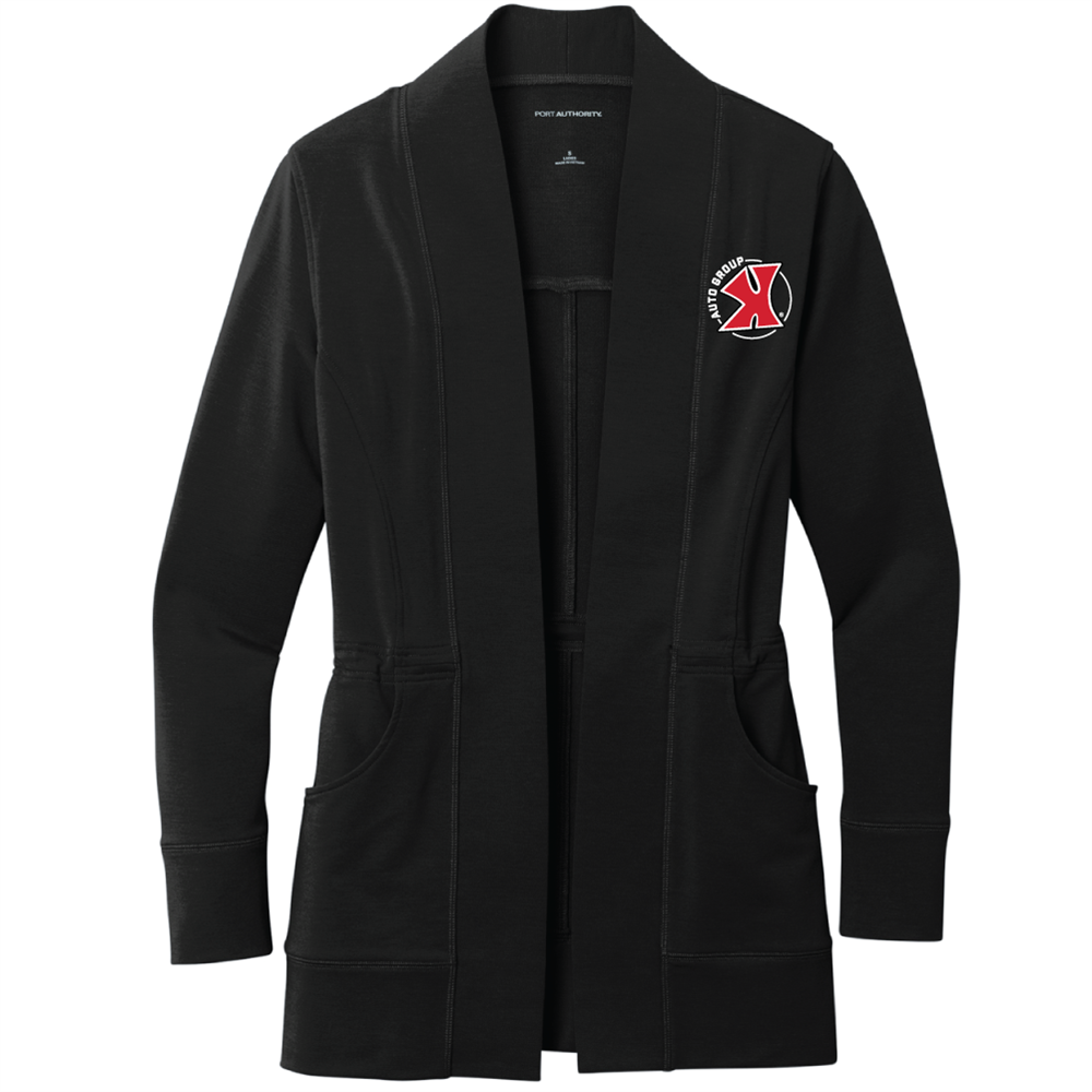 A layering must-have, this 6.8-ounce, 62/33/5 poly/rayon/spandex microterry cardigan is as comfortable as it is polished in appearance. Available in Ladies' sizes XS-4XL with the Karl Auto Group logo embroidered on the left chest.